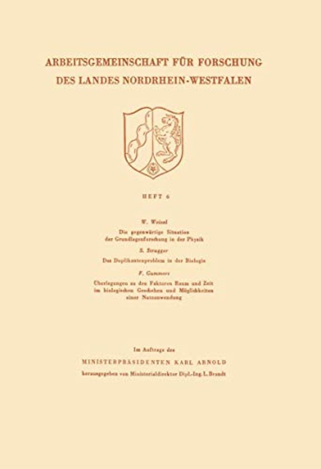 Die gegenwärtige Situation der Grundlagenforschung in der Physik. Das Duplikantenproblem in der Biologie. Überlegungen zu den Faktoren Raum und Zeit im biologischen Geschehen und Möglichkeiten einer Nutzanwendung