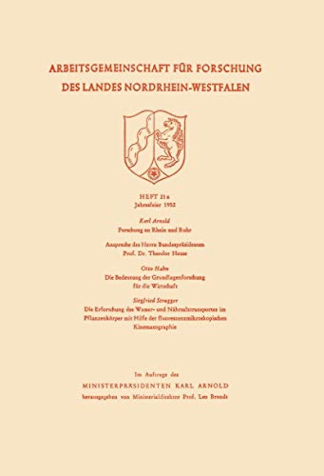 Forschung an Rhein und Ruhr.- Ansprache zur Jahresfeier.- Die Bedeutung der Grundlagenforschung für die Wirtschaft.- Die Erforschung des Wasser- und Nährsalztransportes im Pflanzenkörper mit Hilfe der fluoreszenzmikroskopischen Kinematographie.- Tischreden zur Jahresfeier.