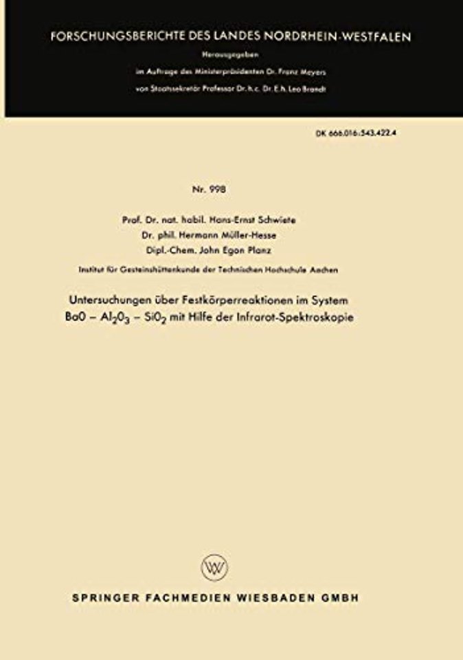 In einer früheren Arbeit [98J wurden Untersuchungen an einem feuerfesten Spezialstein auf de. r Basis BaO-A1 0 -Si0 durchgeführt mit dem Ziel, das 2 3 2 fehlerhafte Verhalten solcher Steine zu vermeiden und die vorteilhafte sten Rohstoffe und technologischen Bedingungen für die Herstellung brauch barer Steine zu ermitteln. Im Anschluß daran stellte sich nun die Frage, wie im einzelnen die Festkörperreaktionen im Dreistoffsystem BaO-A1 0 - 2 3 Si0 sowie in seinen Teilsystemen ablaufen und von den gewahlten Aus 2 gangs stoffen abhängen; bisherige Untersuchungen dieser Systeme hatten sich im wesentlichen nur mit der Ermittlung der Ausscheidungstemperatur ren und -Phasen beim Abkühlen von Schmelzen der verschiedenen Zusammen setzungspunkte beschäftigt. Zur Klärung der Festkörperreaktionen wurde in dieser Arbeit insbesondere die Infrarotspektroskopie herangezogen, da diese unmittelbar Aufschluß über die Bindungsverhältnisse der Stoffe gibt und unabhängig vom Ordnungszustand den gesamten Ablauf der Reaktionen einschließlich aller Zwischenphasen und Fehlordnungszustände erfassen läßt (s. auch [99J). Bei der Untersuchung der einzelnen Reaktionsprodukte wurde jeweils so vorgegangen, daß von ein und derselben Substanz ein Infrarotdiagramm und eine Röntgenaufnahme angefertigt wurden. Die einzelnen Kurven wurden dann in Übersichtsdiagrammen zusammengefaßt und die entsprechenden Aufnahmen gegenübergestellt; auf diese Weise konnte nebeneinander die Entwicklung der kristallographischen Verhältnisse (ersichtlich aus den Röntgenauf nahmen) und die Veränderung in den Bindungsverhältnissen (erkennbar aus den Infrarotspektren) verfolgt werden. Da die Interferenzen der meisten im Laufe der Untersuchungen vorkommenden Verbindungen bereits aus der Literatur bekannt waren, konnten diese zur Identifikation der jeweils vorliegenden Stoffe herangezogen werden.