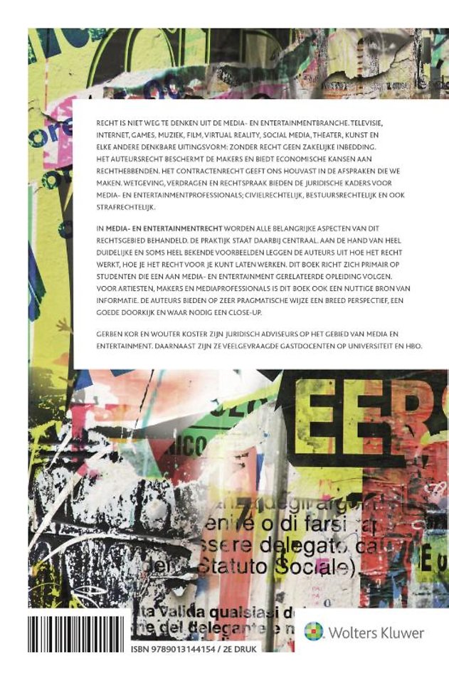 Media- en entertainmentrecht brengt u snel op de hoogte van de wet- en regelgeving binnen de media- en entertainmentbranche. De uitgave is geschreven voor studenten binnen het vak. Maar ook voor artiesten, makers en mediaprofessionals biedt de titel een nuttige bron van informatie.