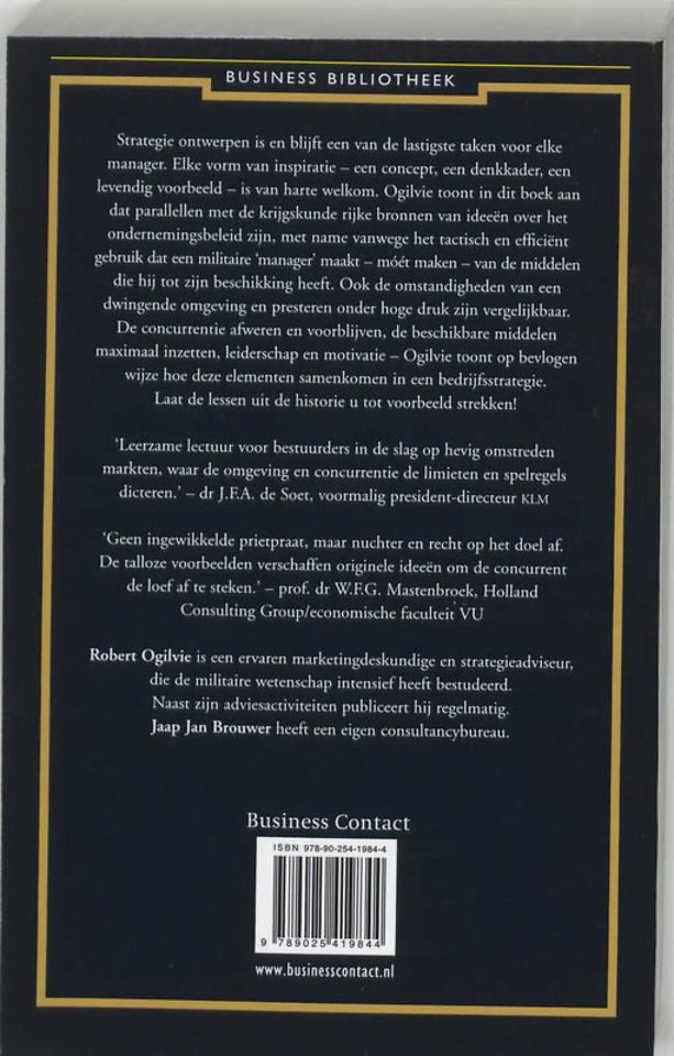 Strategie ontwerpen is en blijft een van de lastigste taken voor elke manager. Elke vorm van inspiratie - een concept, een denkkader, een levendig voorbeeld - is van harte welkom. Robert Ogilvie laat in dit boek zien dat parallellen met de krijgskunde een rijke bron van ideeën over het ondernemingsbeleid vormen, met name vanwege het tactisch en efficiënt gebruik dat een militaire 'manager' maakt - moet maken - van de middelen die hij tot zijn beschikking heeft. Ook de omstandigheden van een dwingende omgeving en presteren onder hoge druk zijn enigszins vergelijkbaar.
