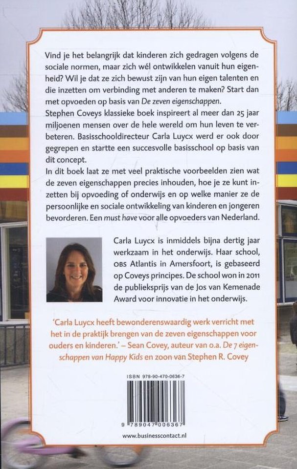 Basisschooldirecteur Carla Luycx werd gegrepen door de theorie van de zeven eigenschappen toen ze zelf deelnam aan een managementopleiding. Deze klassieker inspireert al meer dan 25 jaar miljoenen mensen over de hele wereld om hun leven te verbeteren. Luycx raakte ervan overtuigd dat Coveys theorie ook werkt voor kinderen om hen zelfstandig en sociaal te maken en startte een succesvolle school op basis van dit concept.