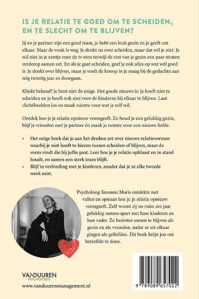 • Het enige boek dat je aan het denken zet over nieuwe relatievormen waarbij je niet hoeft te kiezen tussen scheiden of blijven, maar de vorm vindt die bij jullie past. Leer hoe je je relatie opblaast en in stand houdt, en samen een sterk team blijft.