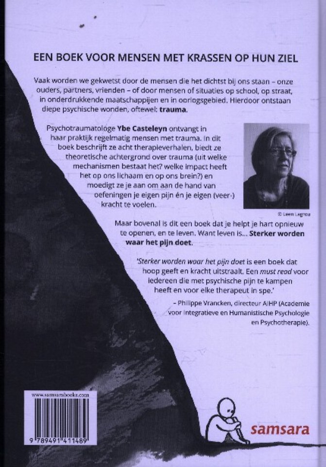 'Sterker worden waar het pijn doet is een boek dat hoop geeft en kracht uitstraalt. Het lukt de auteurs om zowel de pijn als de veerkracht van mensen die getraumatiseerd werden in beeld te brengen. Een must read voor iedereen die met psychische pijn te kampen heeft en voor elke therapeut in spe.' - Philippe Vrancken, directeur AIHP (Academie voor Integratieve en Humanistische Psychologie en Psychotherapie).